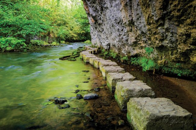 The walk is one of pure delight: limestone cliffs drop straight to the water, great viaducts tower high overhead and boardwalks wind their way through wetlands of wildflowers, where dippers perch on branches and stones, bobbing in the water as they search for food.
