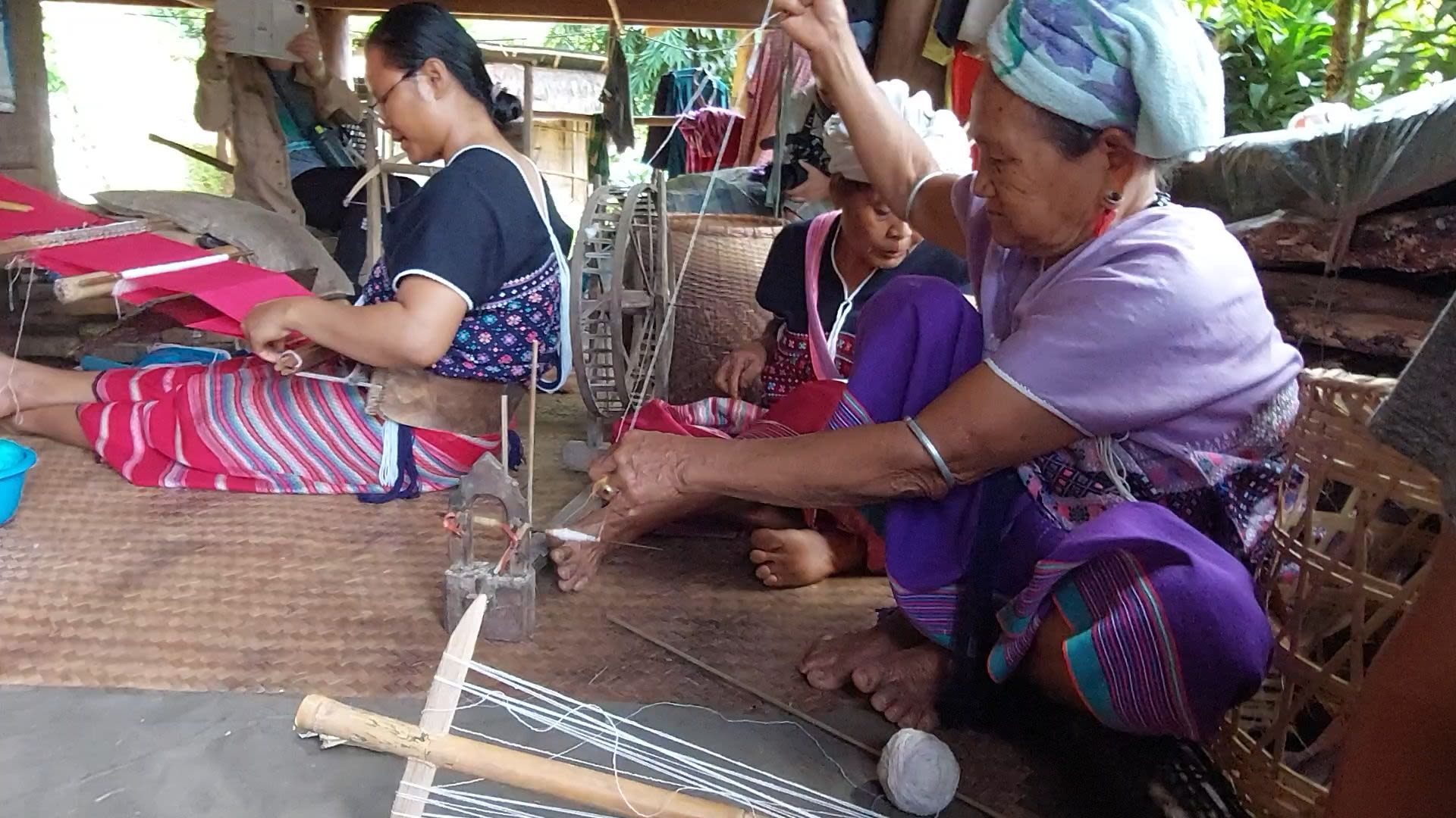 An ochre-coloured soil track took us to a hillside village, Tung Ton Ngiaw, surrounded by rice-terraces and jungle. Locals here speak a Sino-Tibetan language and live in wooden, tin-rooved houses that are raised up on stilts. Many of the Karen women and elder men wear home-woven, red embroidered fabrics, which are also on sale – another revenue stream for the villagers.