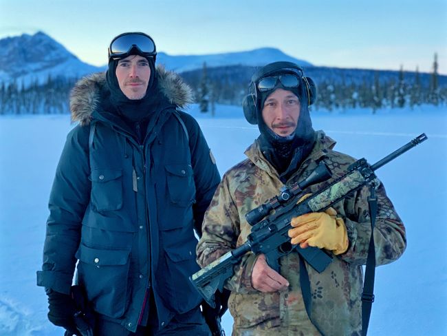 With caribou hunter Charlie Swaney in Arctic Village, Alaska (BBC/Jonathan Young)