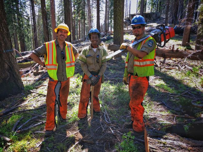 With members of the California Conservation Corps, Kings Canyon National Park, California (BBC/Ruairi Dunne)