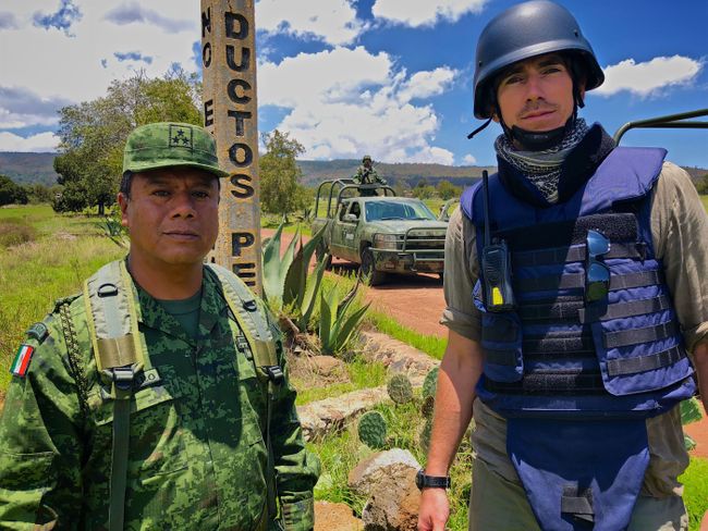 I was up there in a flak jacket and helmet in a part of Mexico that is considered to be a category four war zone. It’s rated alongside Yemen and Libya by the US state department in terms of the danger and the insecurity. We had combat soldiers protecting us at one point, because it is very dangerous, very tricky up there.