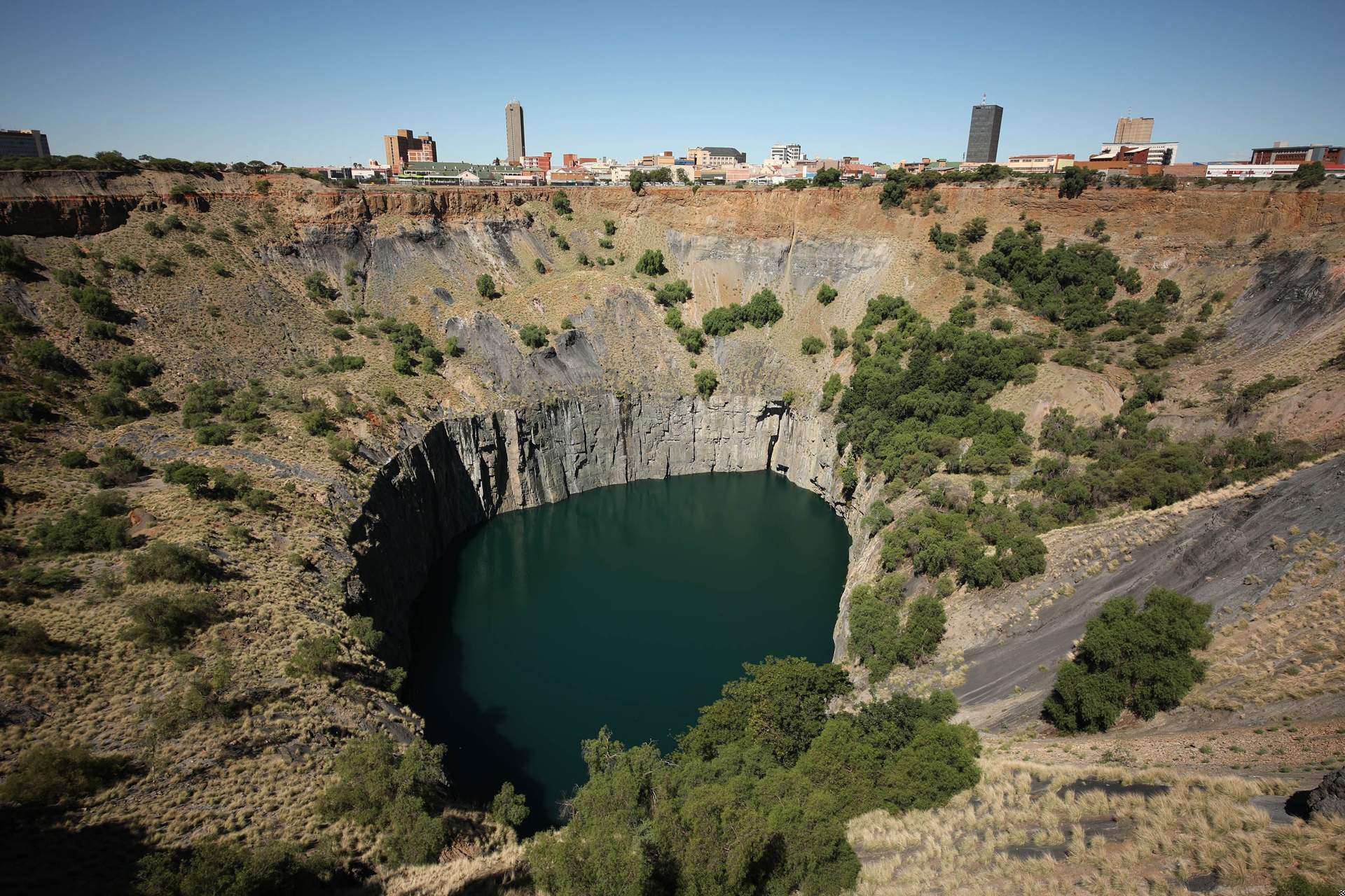 Started when a child found a sparkling stone in the Orange River, a diamond rush followed, with both Europeans and Africans racing to what was once a small, rounded featureless hill (actually an extinct volcano), to purchase land claims and seek their fortunes.