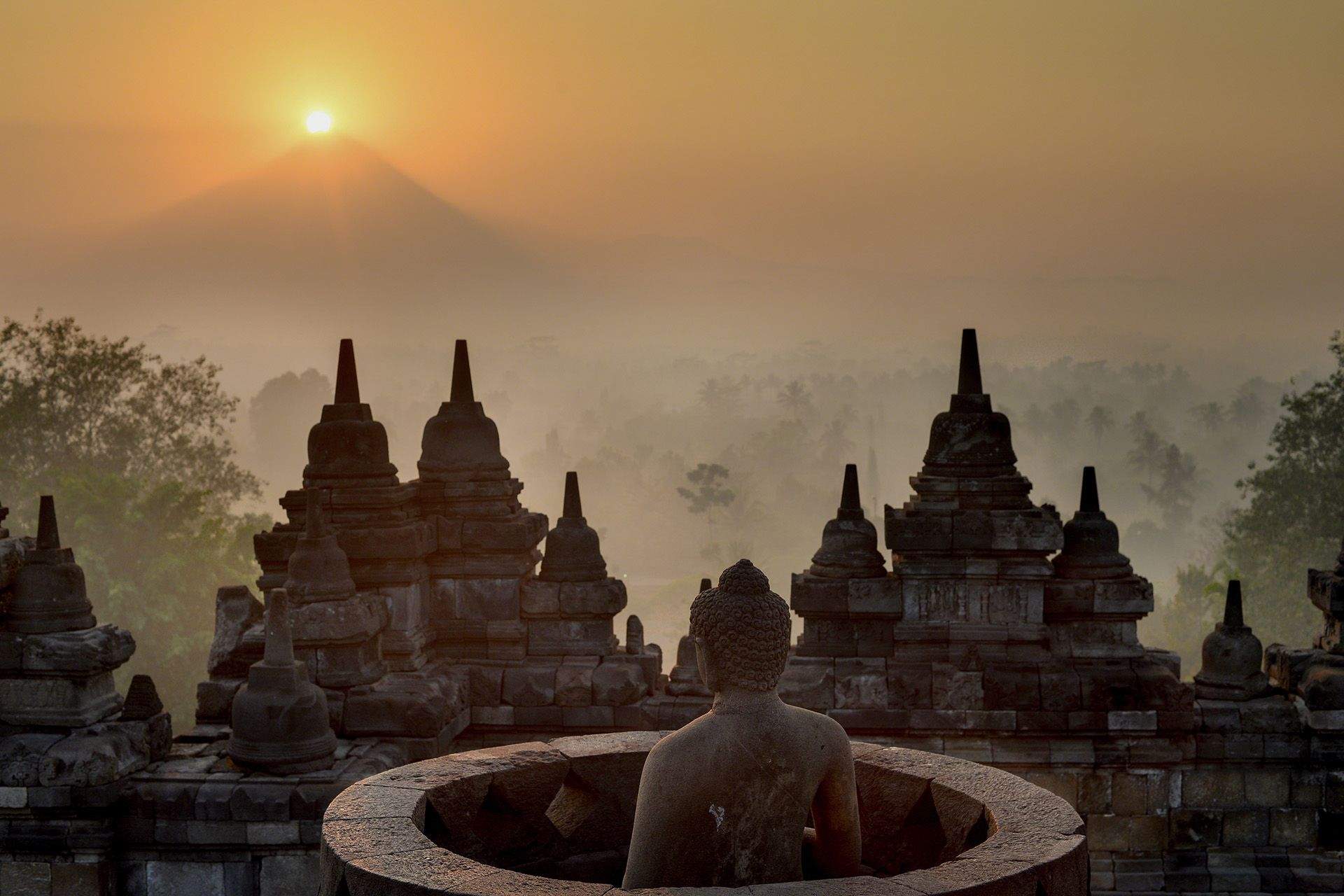 Standing at 2,911m tall, Mount Merapi is best admired from afar. Especially from the ancient Buddhist temple of Borobudur. Seeing Merapi’s smouldering cone, framed by the temple’s beautiful stone bells, is a sight you’ll never forget.