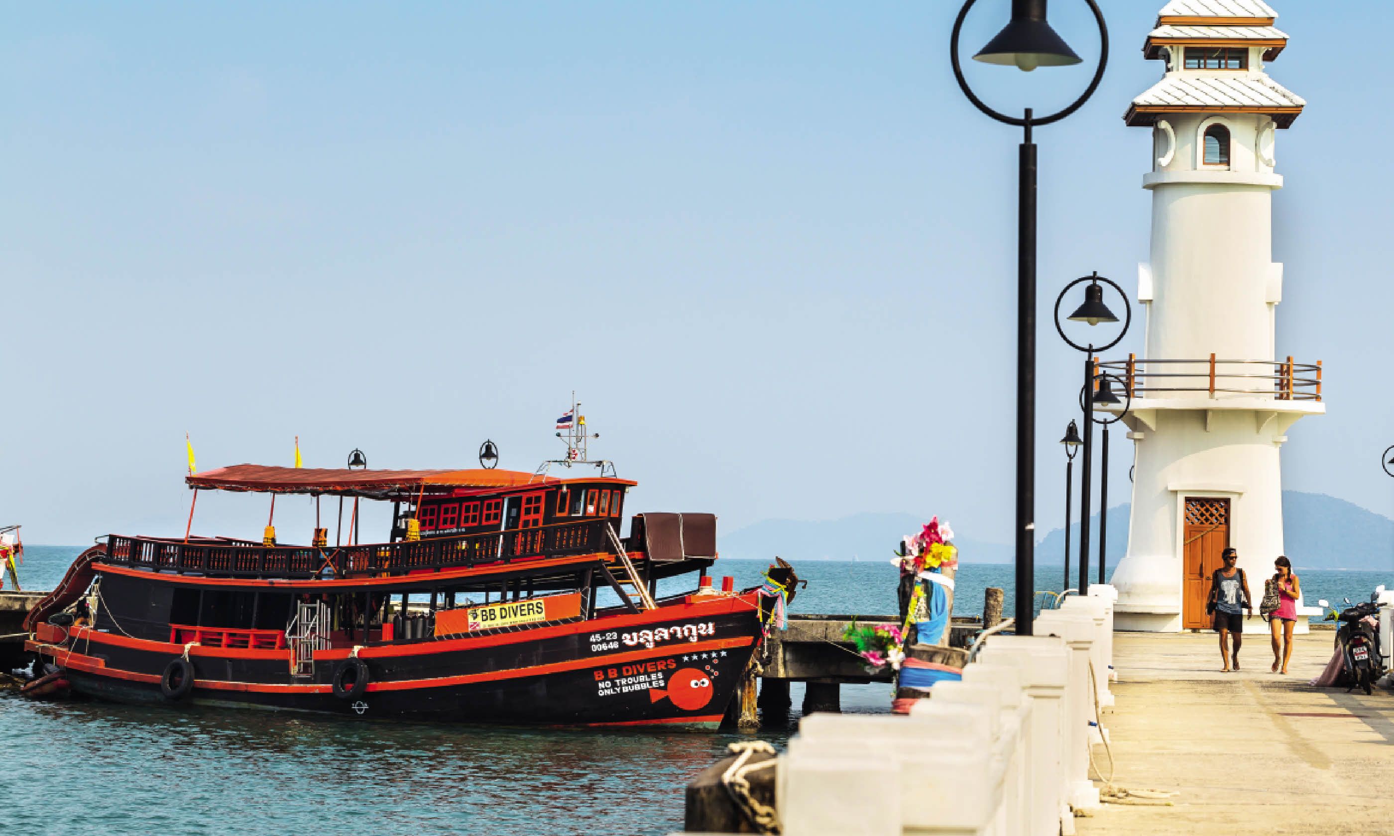 In search of further ‘green travel’, my next port of call signalled something of a sea change in surroundings, as I boarded the ferry from Centrepoint Pier to Koh Kut. The emerald-hued island lies opposite the Thai/Cambodia border in the Gulf of Thailand, but remains relatively unknown. Despite its hemline of dazzling sand and translucent coves, it has so far resisted the siren call of industrialsized tourism that has swept Phuket and Koh Samui. And if the name sounds familiar, it might be because of Koh Kut’s lone luxury resort, the 2014 Thailand Green Award-winning eco-hotel Soneva Kiri. A dizzying counterpoint to the homespun simplicity of the CBT villages, Soneva Kiri lies firmly on the exclusive side. The standard room was a private villa with an infinity pool, merged with patches of rainforest. This ultimate in eco-luxury is a place where lunch, if you like, is sushi on your sun lounger. It is the sort of castaway reverie where you might wash up one in a lifetime (unless you are Madonna, who comes here often). Fireflies lit my path to dinner as a symphony of croaking and chirping emanated from the undergrowth.