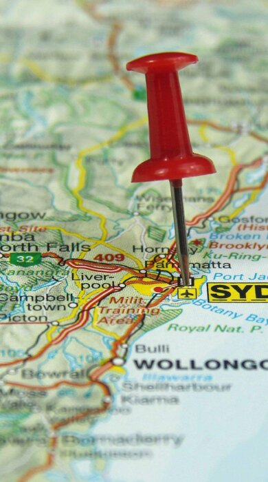 Main image: Sydney on map (Shutterstock)