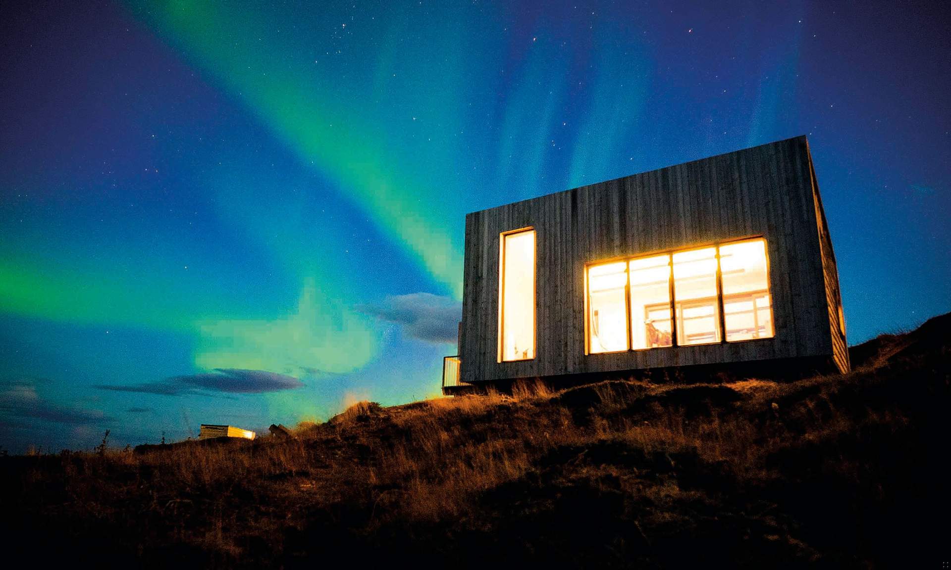 One of the unique remote cabins, lit up by Arctic skies (The Arctic Hideaway official website)