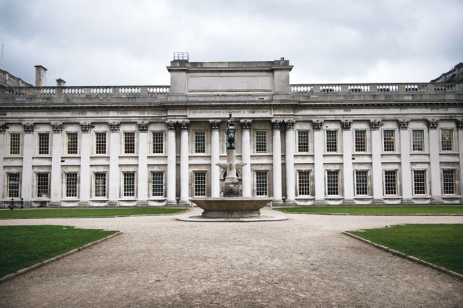 We see the entrance of the Old Royal Naval College, also in Greenwich, fairly frequently throughout the show. It stands in as the courtyard of Buckingham Palace.