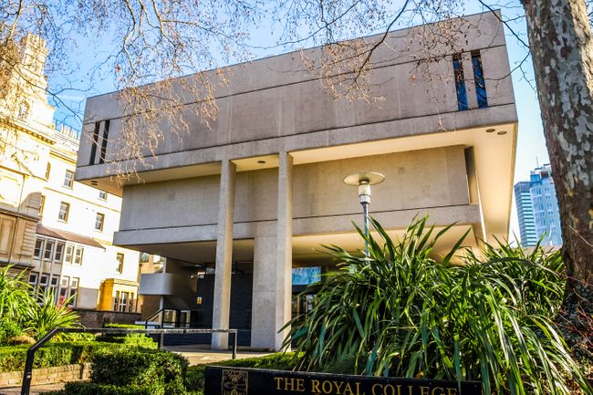 In season three, Olivia Colman as Queen Elizabeth II can be seen wandering around The Royal College of Physicians, which is decorated as an art exhibition.