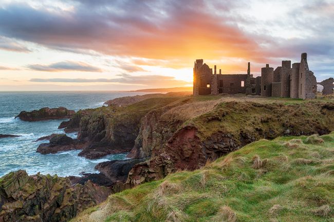 The exteriors of what became her much-loved Scottish home were filmed at Slains Castle, sometimes called New Slains Castle, a castle ruin in Aberdeenshire. Like so many, it also claims to be the inspiration behind Bram Stoker’s Dracula on its official website.