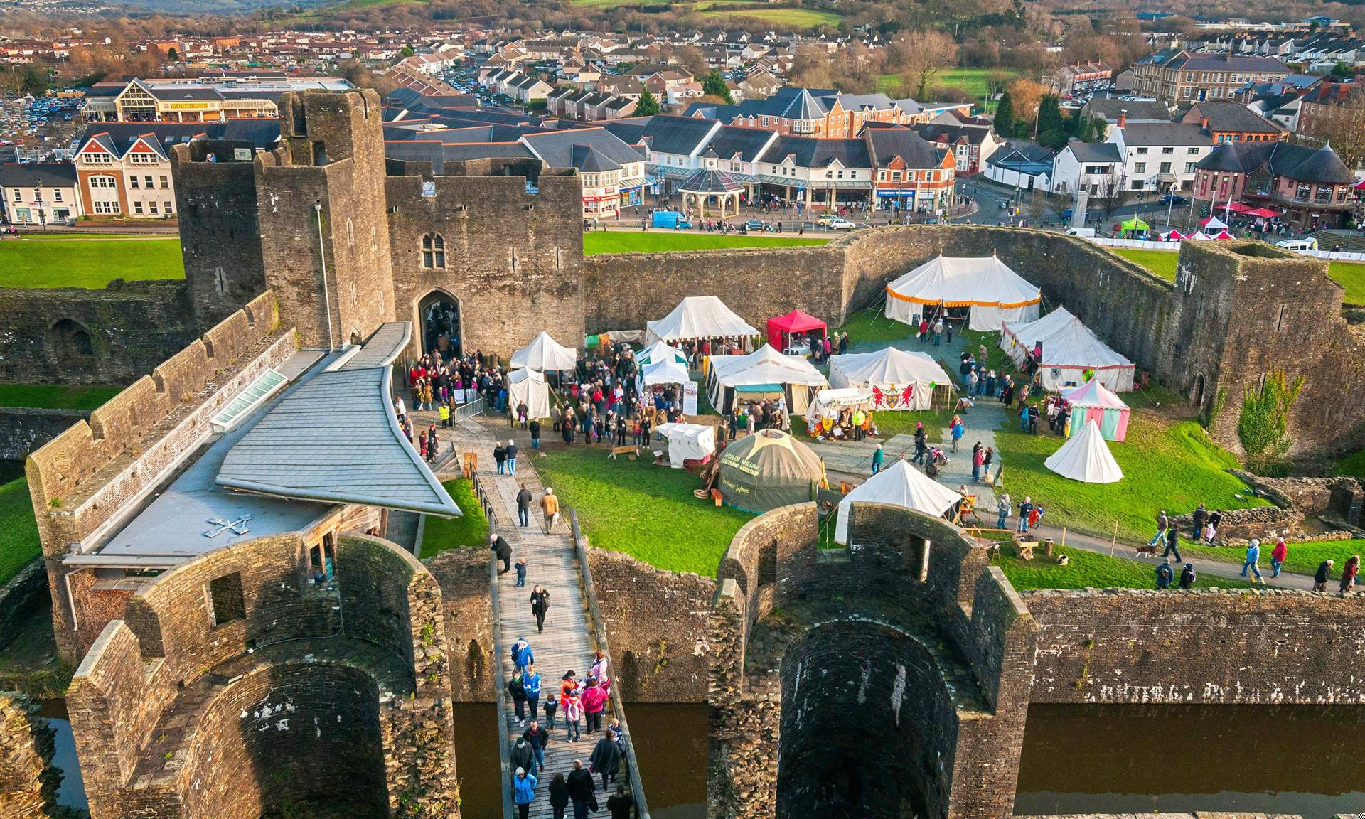 Aerial view of Caerphilly Castle Christmas Market (Visit Caerphilly)