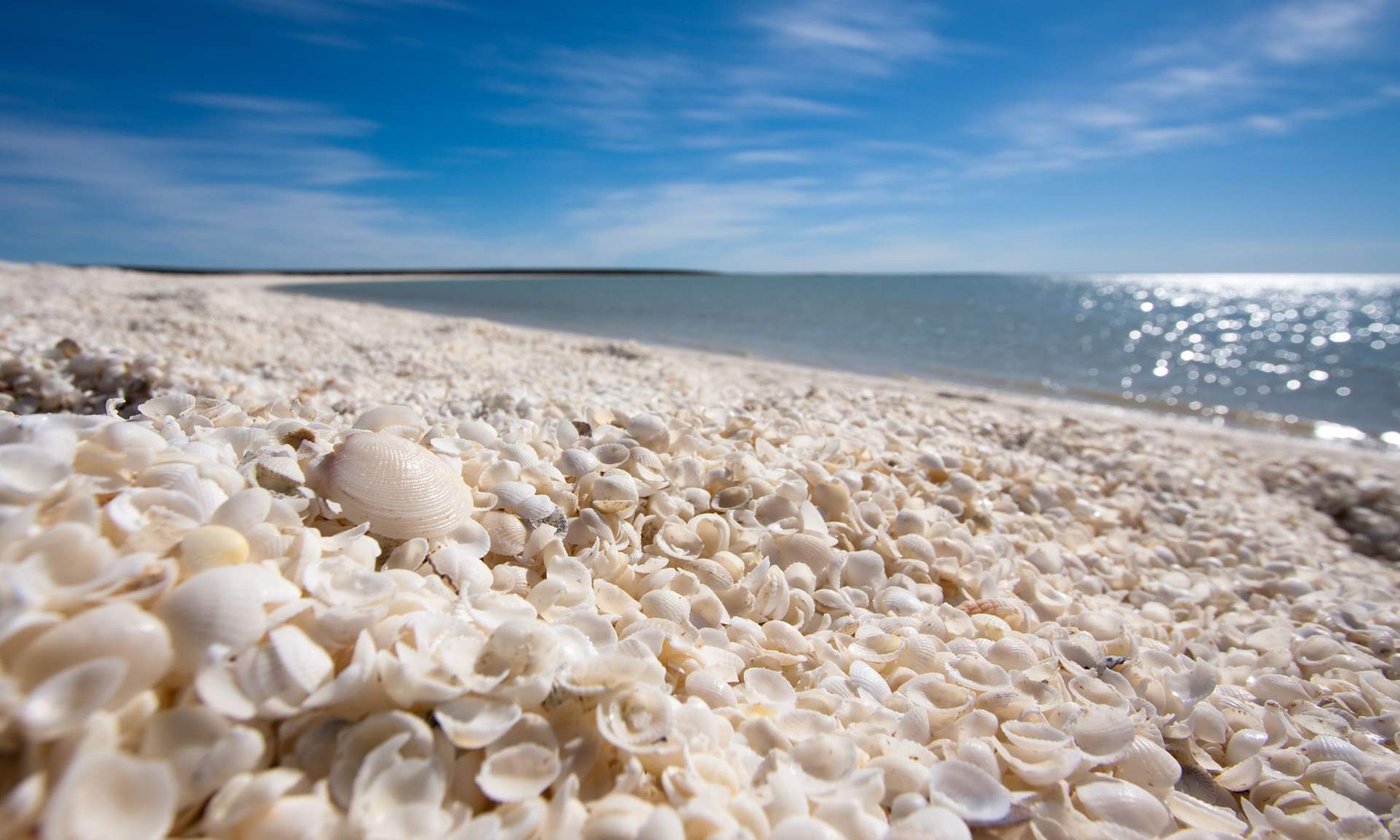 Situated on L’Haridon Bight in Shark Bay, Shell Beach in Western Australia is home to billions of tiny coquina bivalve shells, deposited here over 4,000 years ago. The result is a sixty-kilometre long snow-white beach, lapped by an aqua blue sea, covered in shells that go down 6 to 10 metres.