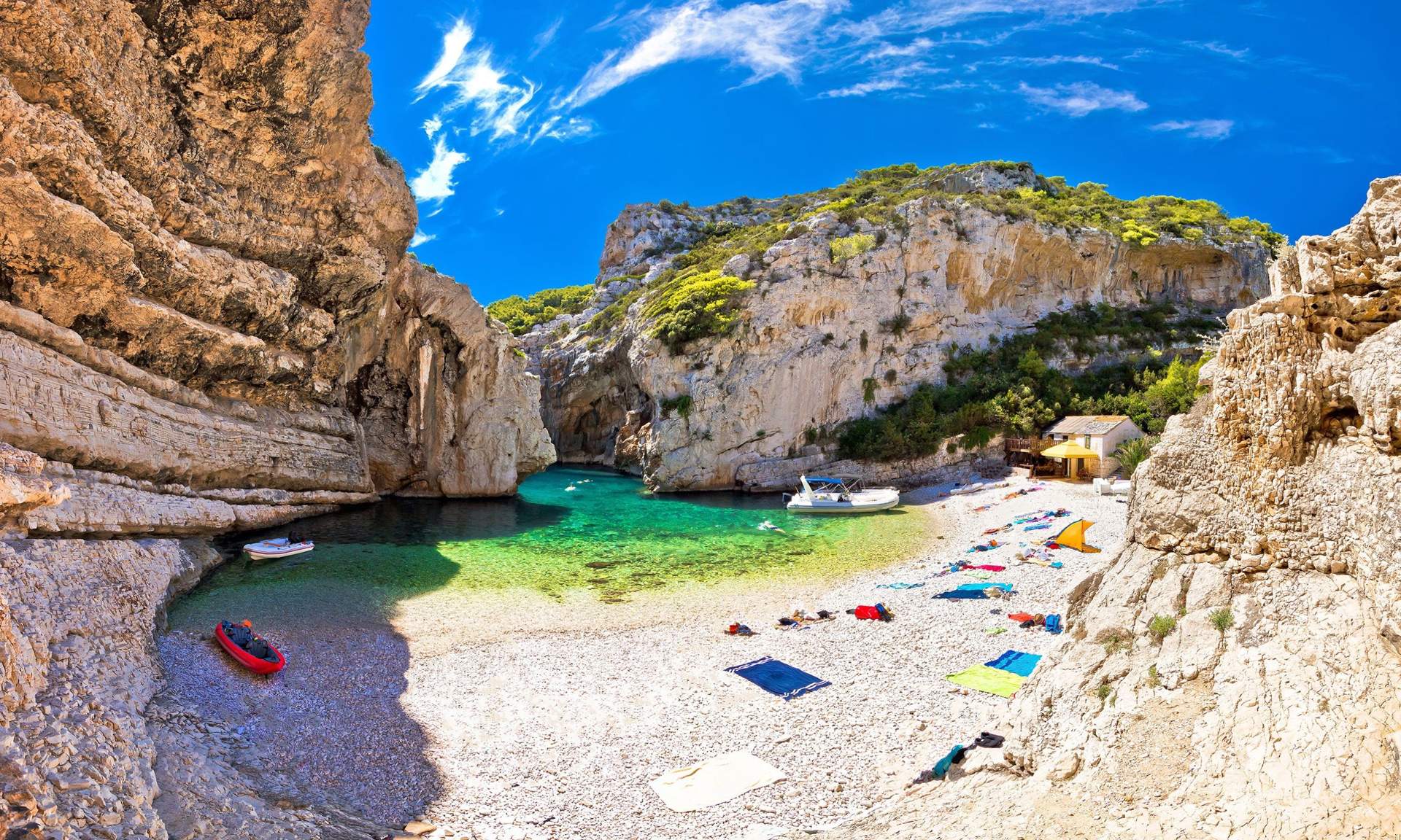 Whether you like your beaches sandy or pebbly, remote or close to town, Vis has the perfect beach for you. Stiniva is the most famous: it’s encircled by cliffs, with a small passage to the sea. It is regularly voted the most beautiful beach in Europe.
