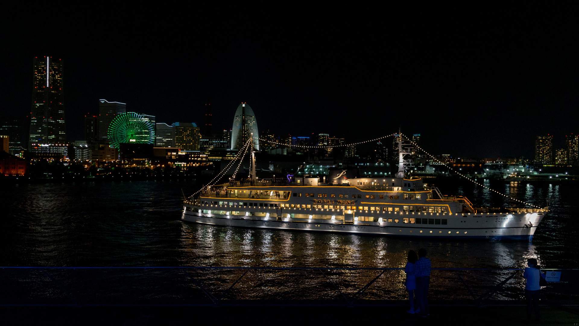 View of Minato Mirai 21 district and the Royal Wing cruise ship at night (Shutterstock)