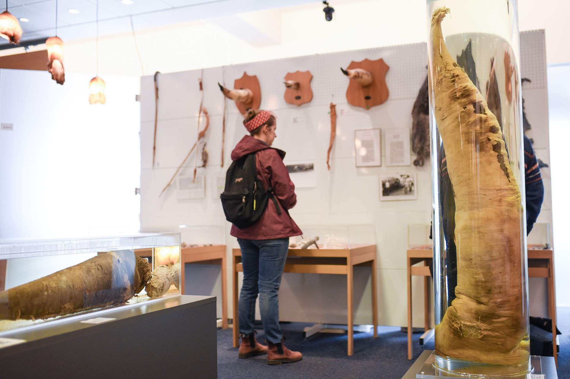 A woman exploring the inside of the Icelandic Phallological Museum (Shutterstock)