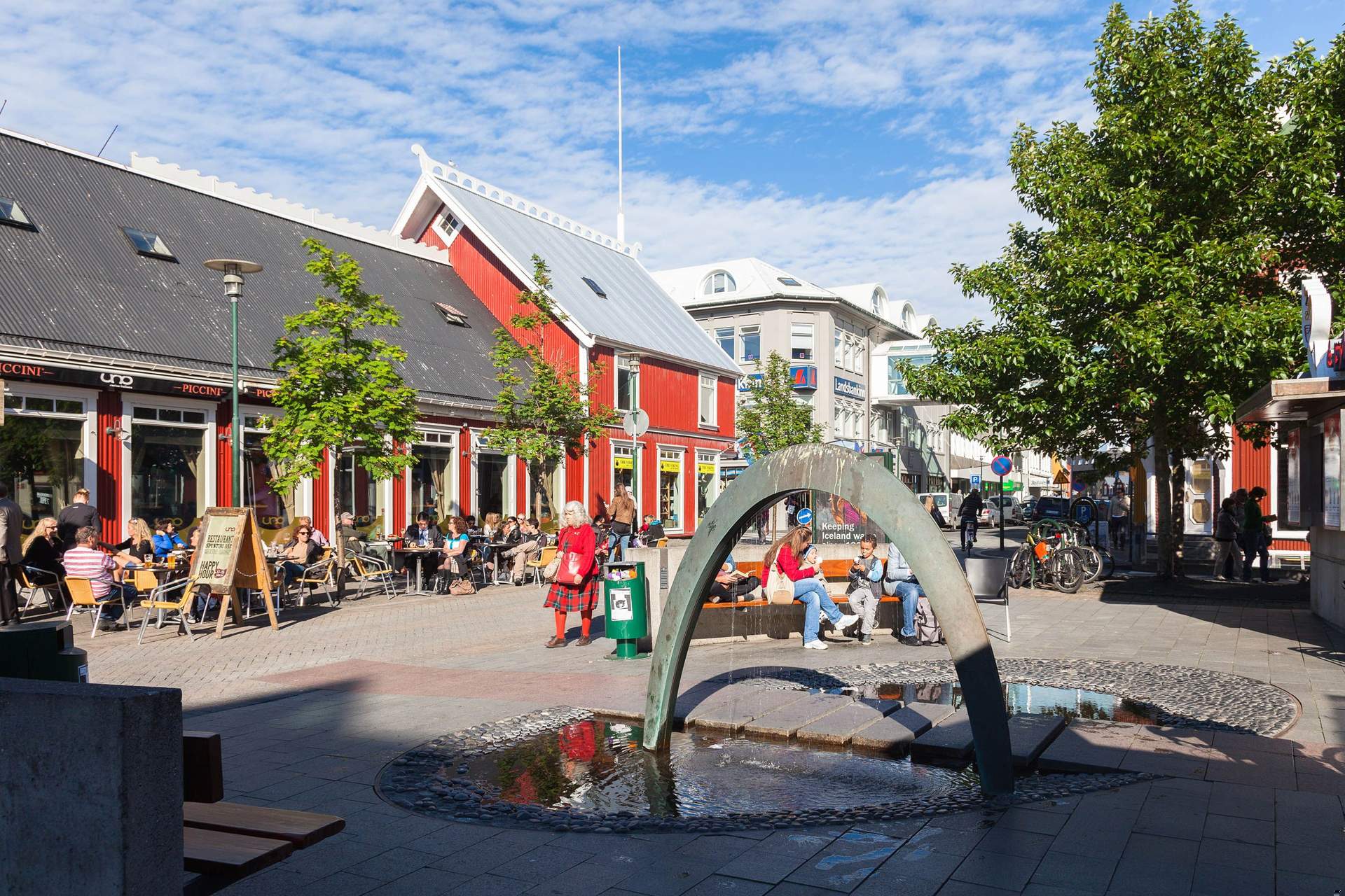 Ingólfur Square in Reykjavik, home to shops, cafes, street food stands and sporting events on TV in the summer (Dreamstime)