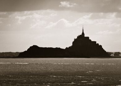 Most visitors spend an hour in the abbey, buy their souvenirs and leave, but you’ve come in winter, and you’re here to stay. Two or three of the hotels down by the main gate will be pleased to offer you a room, and the lanes outside will be deserted as soon as night falls. Snatcha moment, however, to venture out onto the causeway after dark. The island is at its visual best from here, lit up from skirt to spire like a Gothic rocket straining at its earthy foundations in a vain attempt to get to heaven.