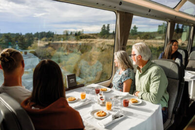 The TranzAlpine has two classes of ticket: Scenic and Scenic Plus, costing £110 and £222 per person respectively (one-way). The latter launched in 2023 and includes drinks and dining; it also offers access to an exclusive open-air carriage – a genuine perk, as the Scenic equivalent can get busy. Book tickets at greatjourneysnz.com.
