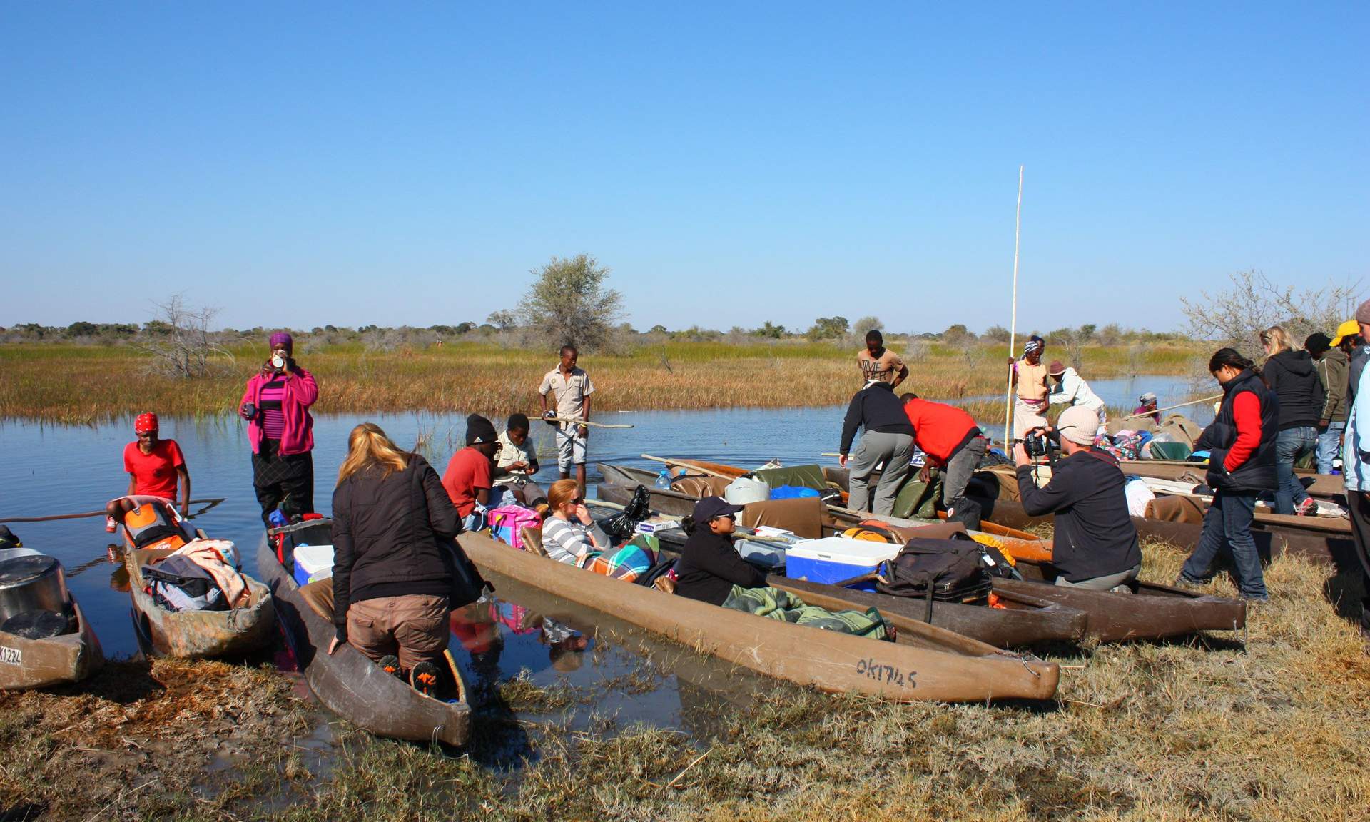 Tourists with canoes, Okavango Delta, Botswana (Dreamstime)