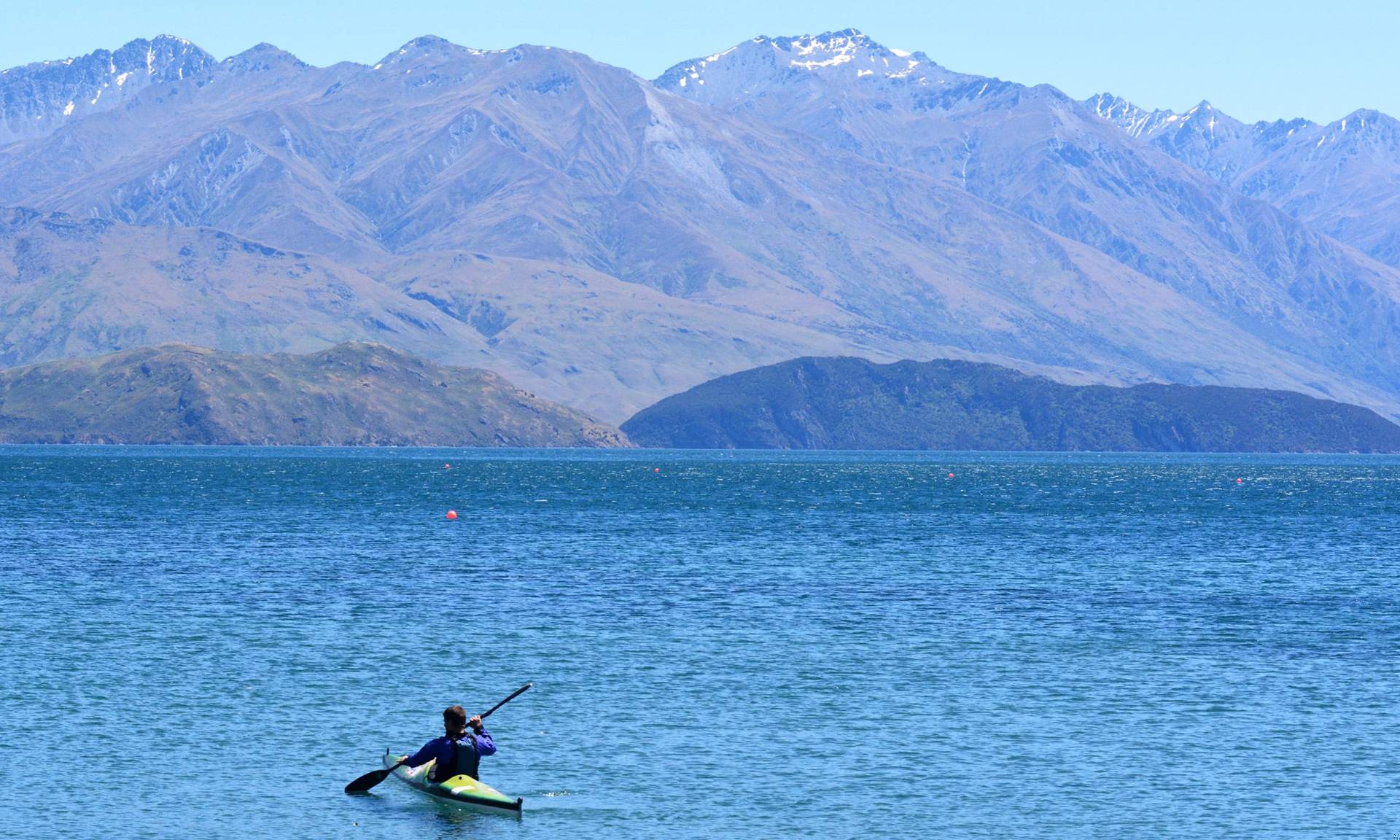 A man paddles a canoes in Wanaha lake, New Zealand (Dreamstime)