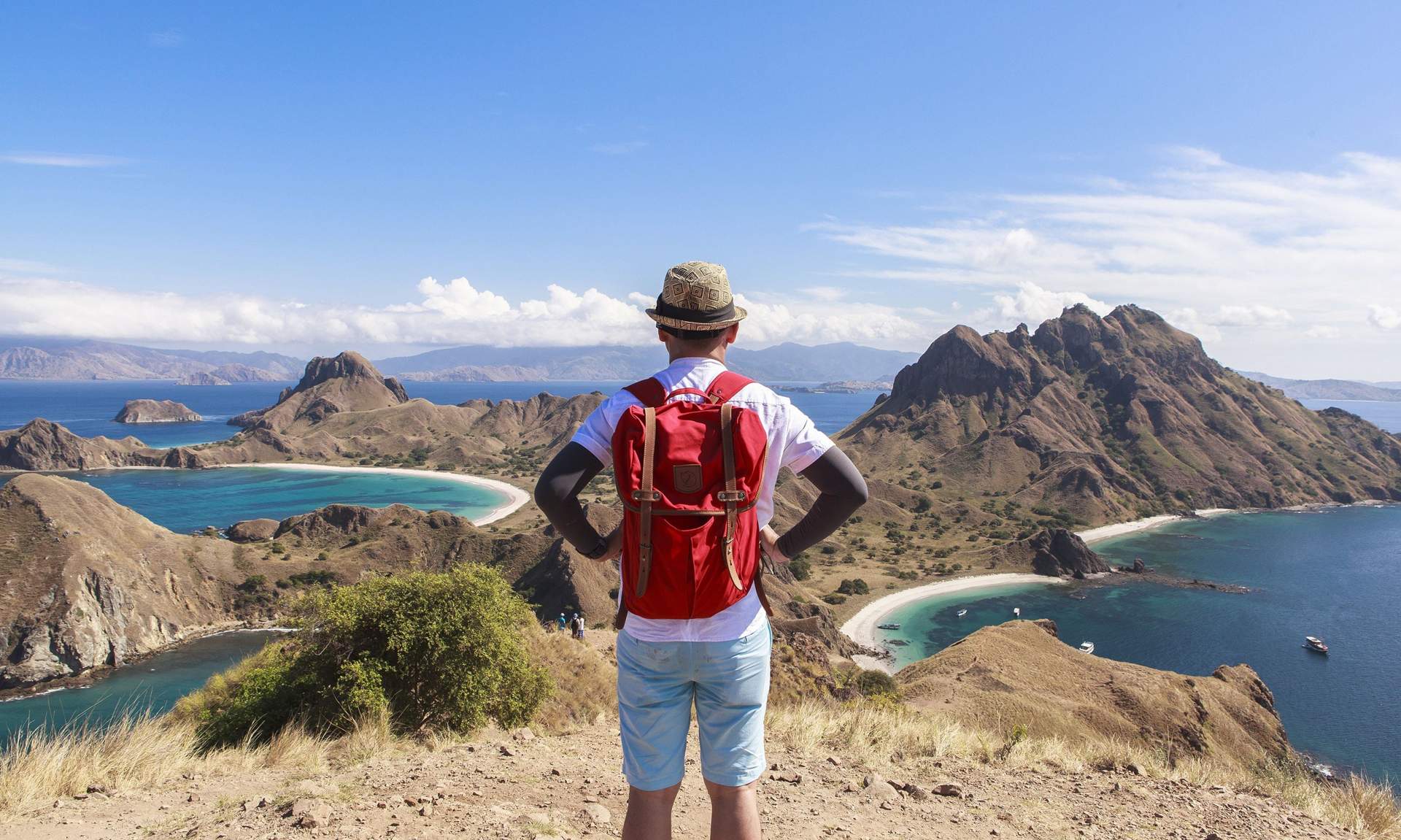 A tourist looking out at Komodo National Park, Indonesia (Dreamstime)