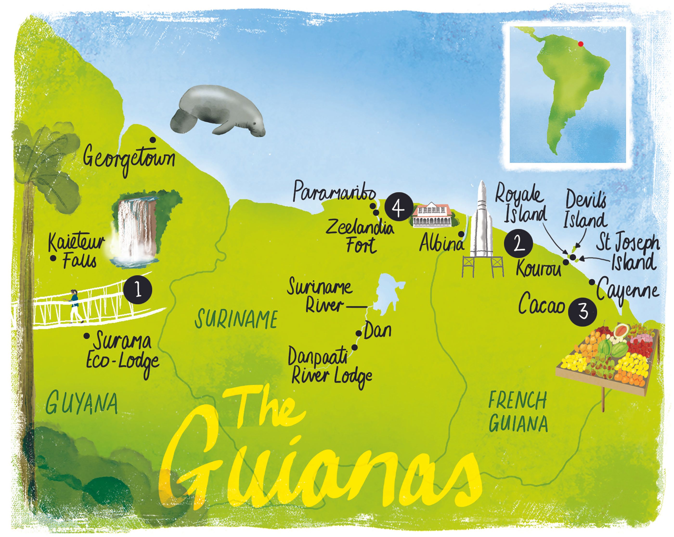 One thing I didn’t do, however, was utter a single word of Spanish, or even Portuguese for that matter. Blame the European colonialists for the linguistic and cultural idiosyncrasies of the so-called 3Gs – not the mobile-phone signal but Guyana, Suriname (formerly Dutch Guiana) and French Guiana. This trio are some of South America’s smallest nations, carved from the bone-shatteringly hard two-billion-year-old Guiana Shield craton in the far north-eastern Amazon.