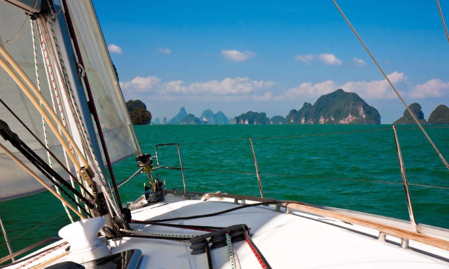 Sailboat heading towards Phang-Nga Bay in Thailand (Shutterstock)