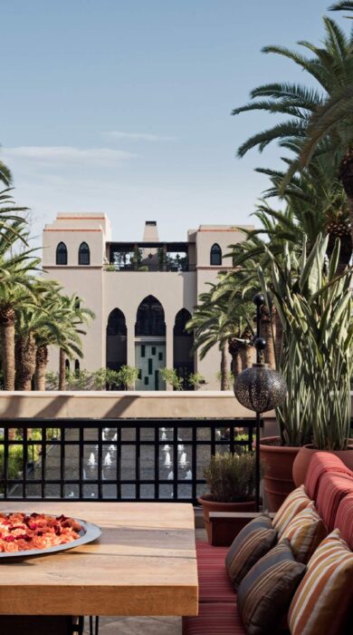 The Mandarin Oriental’s luxury suites and villas offer winning views of the city’s minarets and mountains, framed by gardens of roses and olive trees. The modern styling incorporates the traditional Moroccan features of latticed wood, cutwork lanterns, soothing pools and handwoven wool rugs embroidered with Berber motifs.