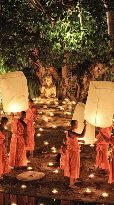 Thailand’s second city, Chiang Mai sits at the feet of rainforest-swathed hills in the country’s far north. It’s dotted with beautiful buildings including 800 year-old wooden temples with crumbling chedis and medieval fortified walls that were built when the city was the capital of its own kingdom. Watching over it all and shining gold in the sun is the holy hill of Doi Suthep where pilgrims from all over Thailand come to meditate and make morning offerings to the monks.