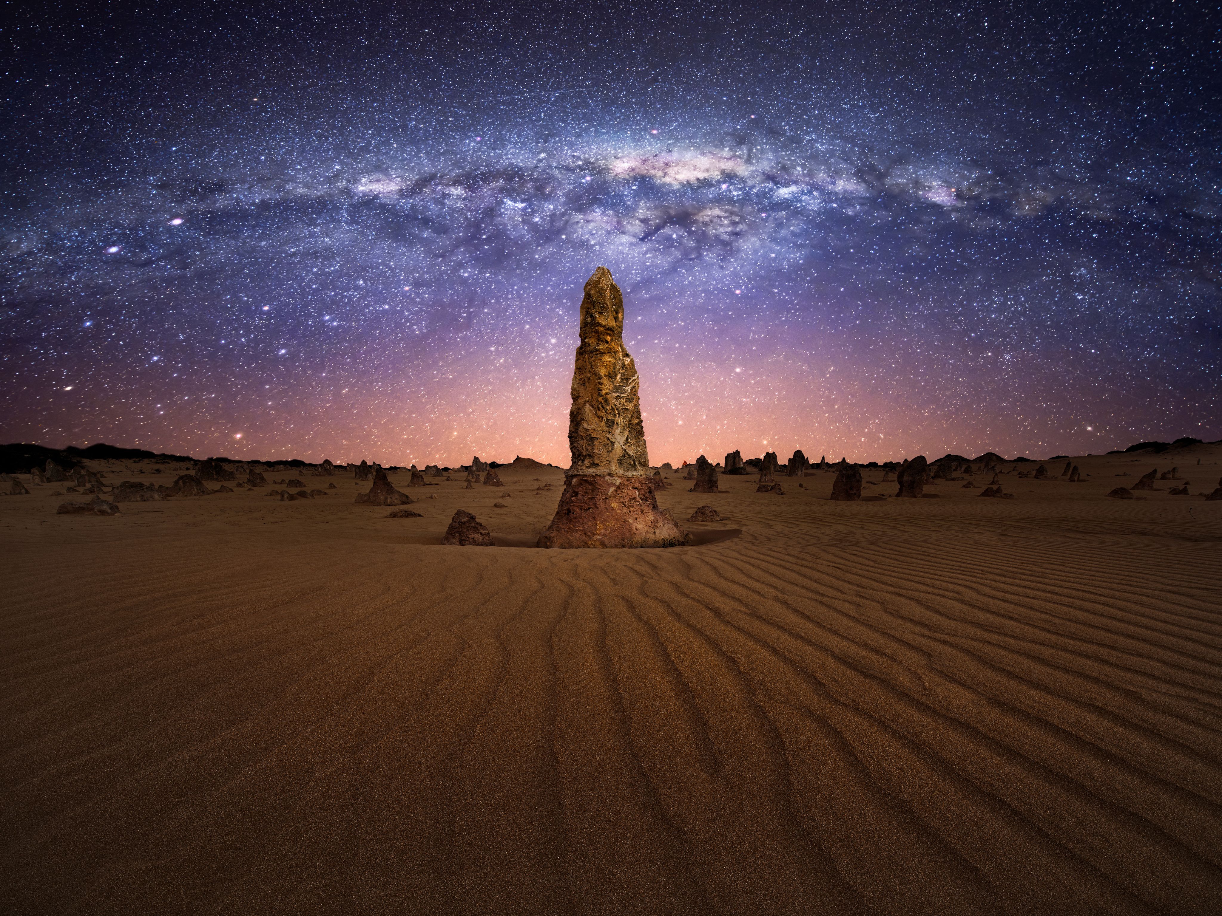 In the coastal town of Exmouth, the luxury tented camp of Sal Salis offers unparalleled views over the Cape Range National Park and is the gateway to Ningaloo Reef’s northern fringes. Naturalists lead walks into bush to see black-footed rock wallabies and wedge-tailed eagles, while marine biologists take you on snorkelling tours of the fringing reefs – just a few metres away from the doorstep of your luxury tent. Boat tours to swim with gentle whale sharks can be organised by the camp – with each encounter led by skilled guides who run ethical snorkel encounters. The camp’s far-flung location, and lack of light pollution, means it turns into a star-gazing haven at night. Watch the Milky Way come alive from the comfort of a private veranda.