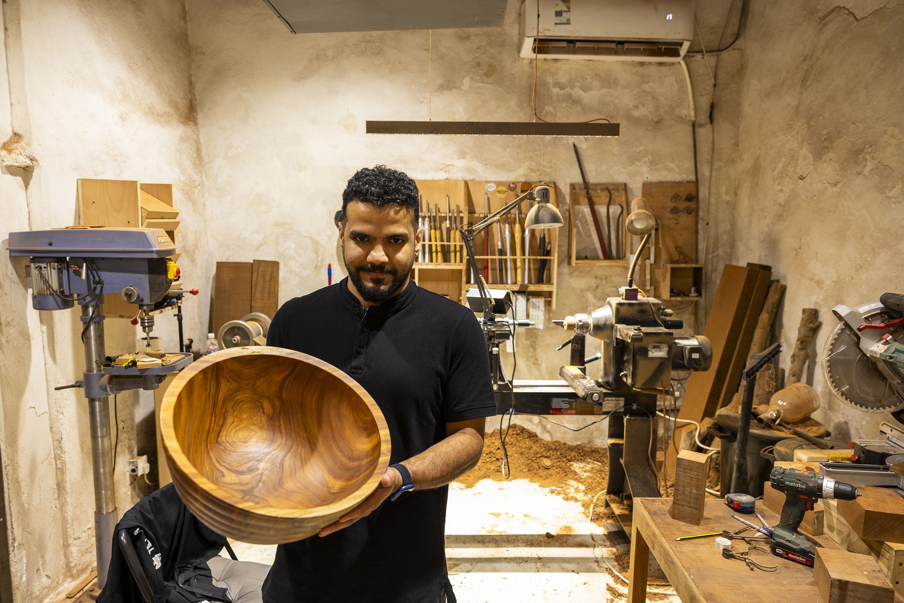 The Zawiya programme also allowed 29-year-old Hassan Mohammed to open ‘Aromat,’ his woodturning workshop selling artisanal hand-crafted bowls, vases, and candlesticks. “There are very few wood turners left now – it’s rare in the world, not just Jeddah. I had to teach myself because there were no teachers,” he said. “It started in 2015 when I wanted to make a set of chess and to do so I had to learn how to turn wood – and in doing so I discovered its great history and realised there was a Al-Kheratah (‘Woodturner Lane’), so I wanted to be in this historic area where it all started.”