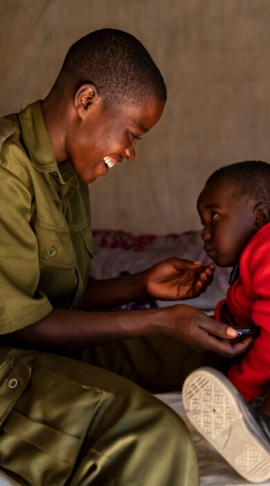Sithabile Munenge, 33, has a similar story. Sithabile used to sell tomatoes on a dusty road to make money to feed her children – but now she’s a community ranger for National Park Rescue in Zimbabwe. She says, ‘It wasn’t enough to look after them. Usually men are the first preference to be employed by companies. But now I have the respect of my community, and I will be able to build my children’s future.’