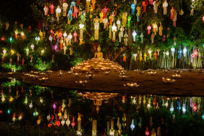 Held every November, although not always, Loy Krathong marks the end of the rainy season and gives thanks to the Goddess of the Water. Special lotus-shaped baskets are lit and released into the river, as a symbol of letting go of the bad things that happened that year and asking for good luck in the next.The krathongs (flower baskets) are made from coconut shells and form an extraordinary sight as they float down the river en masse. Traditional Thai dance shows and concerts are an equally important part of the festivities.