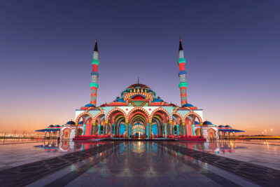 While most travellers will have heard of Dubai and Abu Dhabi, the emirate of Sharjah flies under the radar for many. Best known for its art and culture, this is on full display each February during the Sharjah Light Festival, when light animations are projected onto some of the emirate’s most popular attractions. The displays change each year, but areas that will be lit up include Sharjah Mosque, Al Majaz Waterfront and Al Heera Beach, with some displays in Khor Fakkan and other cities.