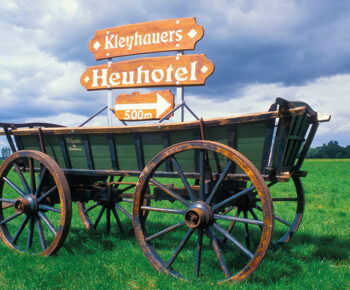 What do visitors to Germany’s heuhotels typically sleep on at night?